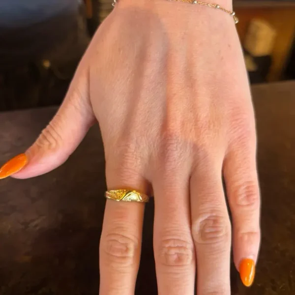 The ring is crafted from real 18k yellow gold, offering both durability and style. It’s ideal for surfing adventures or as a symbol of your ocean love. The exclusive design is part of a larger collection, making it easy to find complementary pieces. Experience the luxurious warmth of 18K yellow gold elegance.